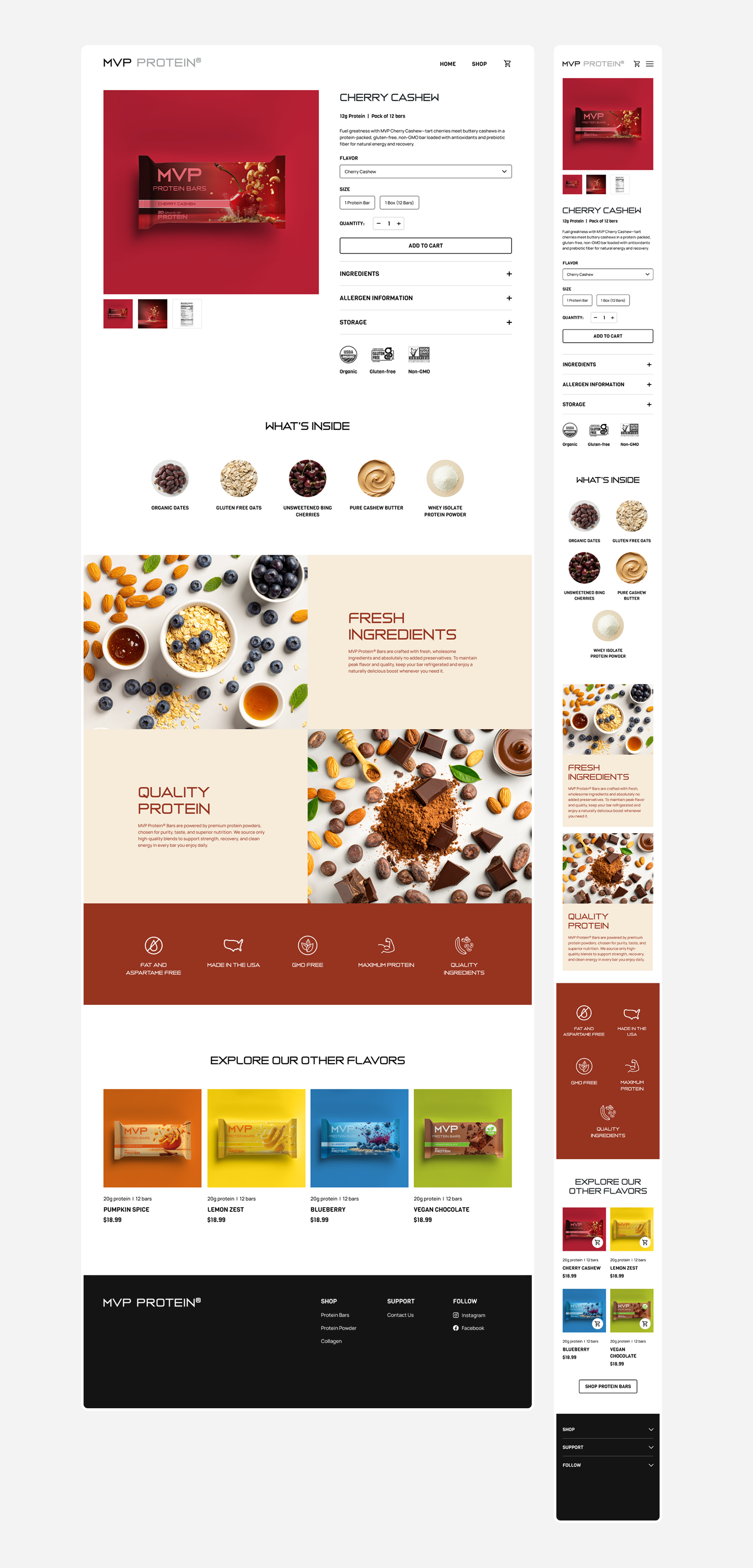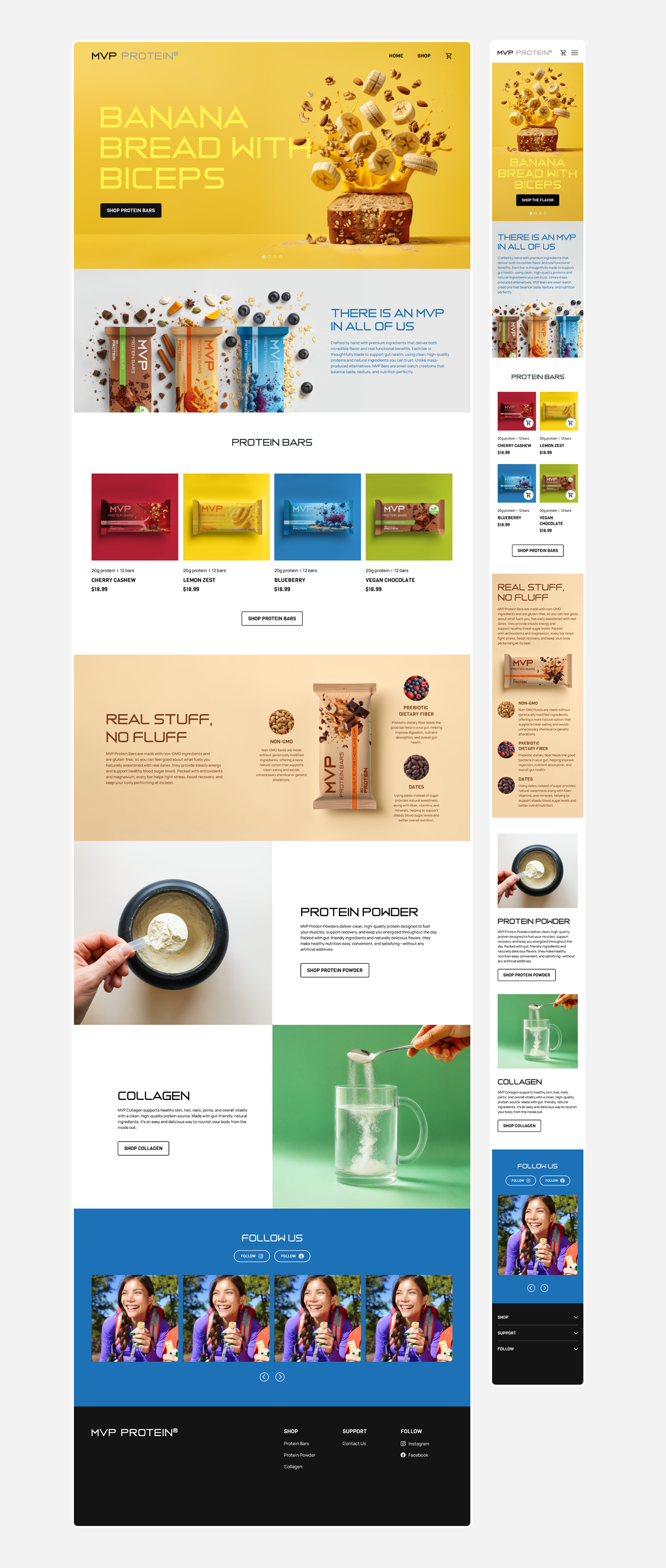 MVP Protein crafts health foods using clean, all-natural ingredients. I redesigned their website to reflect their new branding and create a more intuitive, user-friendly shopping experience.